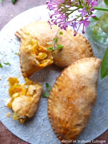 N’ayant pas de farine de millet dans mon placard, j’ai travaillé la recette sur les 3 autres farines. Bilan: j’ai eu du mal a confectionner les chaussons (la pâte craquait), et à la sortie du four, malgré une farce délicieuse, la pâte n’était pas terrible en terme de goût et de texture.