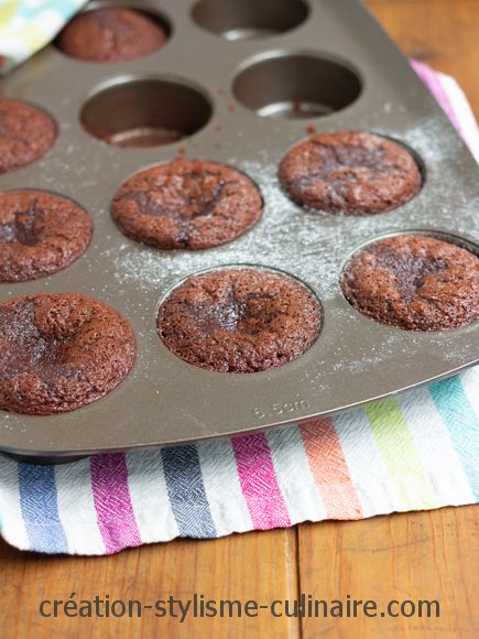 Ma plaque à muffins permet de réaliser 12 portions à la fois de coeur coulant au chocolat sans gluten…