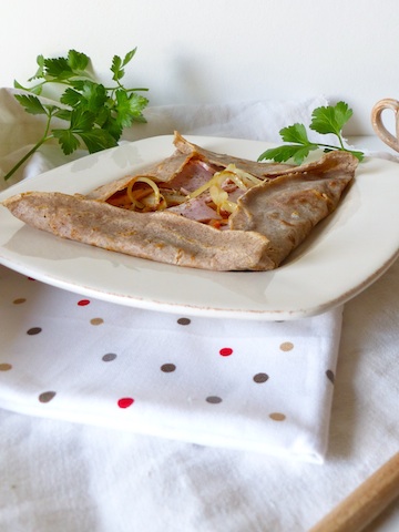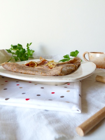 Mais aujourd’hui, sur les conseils de Marmotte (grand merci!), j’ai réalisé une pâte à crêpes avec pour seuls ingrédients : de la farine de sarrasin, du sel et de l’eau. Et ce fut un régal! Comme quoi, il faut pas toujours une foultitude d’ingrédients pour confectionner de bons petits plats…