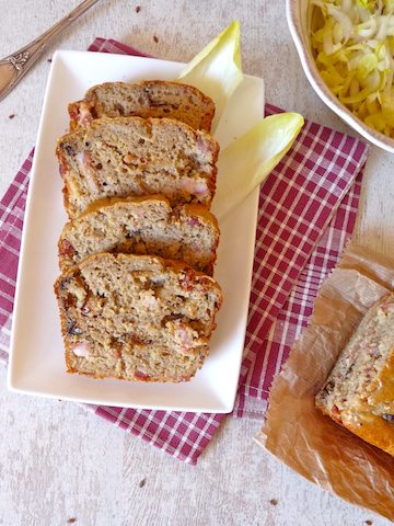 Pour changer des éternels cakes salés jambon-olive (au secours, on en peut plus!), voici une idée de saison : le cake sans gluten endive, pruneau, oignon. Cette association fonctionne à merveille car l’amertume de l’endive cuite s’allie délicieusement à la note sucrée du pruneau.