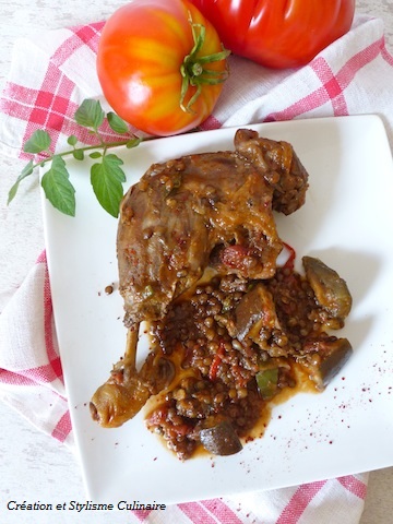 Mon envie soudaine d’y associer des lentilles blondes a parfaitement fonctionné : doucement cuites dans le jus, elles sont délicieuses… De plus, elles apportent une touche originalité à ce plat : ça change des pommes de terre et du riz ! En savoir plus sur les bien faits des légumes secs…