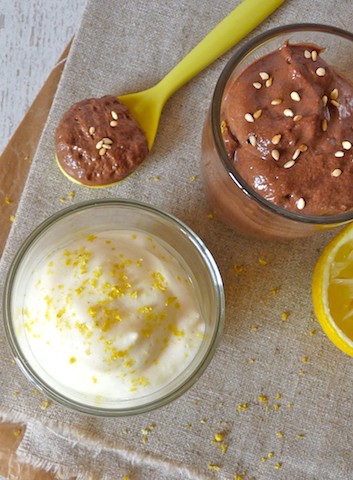 Dresser votre dessert sans gluten dans des verrines, décorer avec le zeste de citron restant.