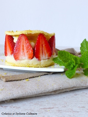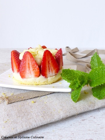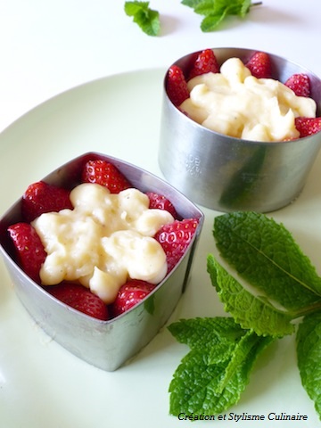 J’ai choisi aujourd’hui de parfumer mon fraisier avec de la menthe fraîche du jardin. Plus classiquement, l’association avec la vanille est un régal…