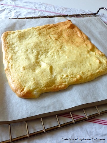 Cuire la génoise 10 à 15 minutes à 180°C : elle doit être légèrement dorée (la mienne n’a pas cuit de manière uniforme!).