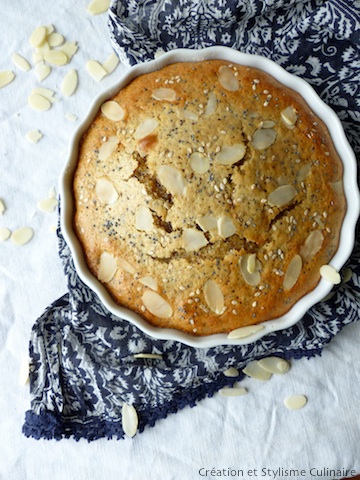Voilà un gâteau sans gluten bien moelleux aux accents du Sud (citron, amande, farine de pois chiches) réhaussé de petites graines, tant pour l’intérêt nutritionnel que le croquant…