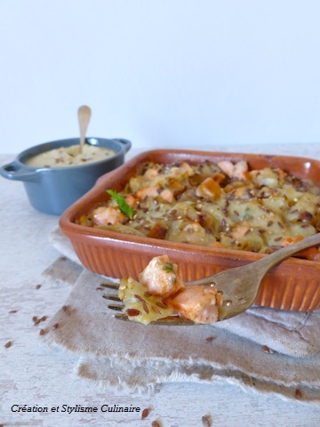 Vite fait, bien fait, un petit gratin de saumon aux légumes, onctueux comme il faut grâce à une béchamel sans gluten.