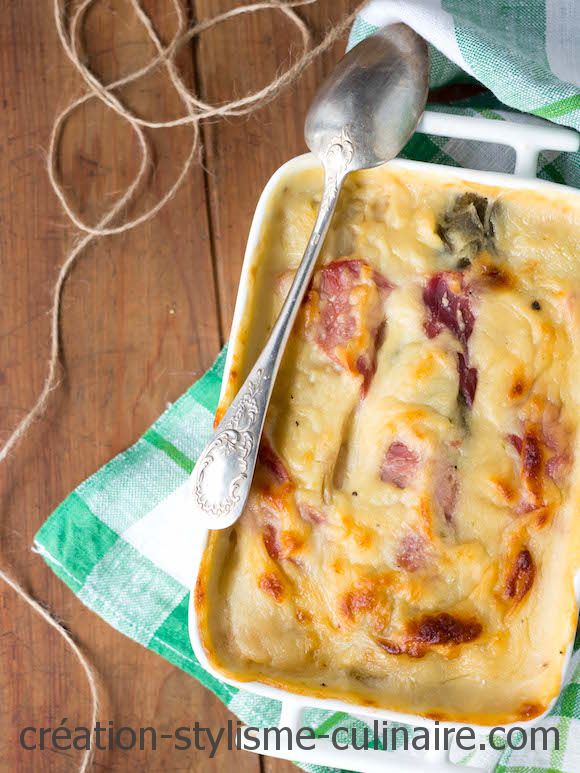 - Gratin sans gluten de courgettes, lardons, moutarde à l’ancienne