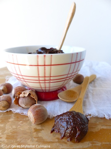 nb : Ma pâte à tartiner, un peu chargée en cacao, paraît très foncée. J’ai réduit les proportions dans la recette ci-dessus pour plaire au plus grand nombre.