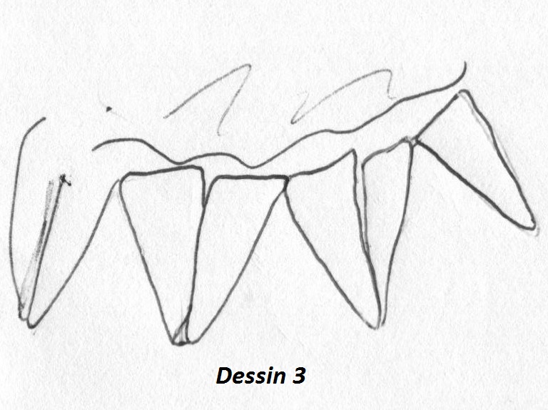 Rabattre les bords extérieurs de la pâte sur la garniture en formant des pointes (dessin 3), puis faire de même au centre de la tarte en rabattant les petits pics de pâte vers l’intérieur (dessin 4).