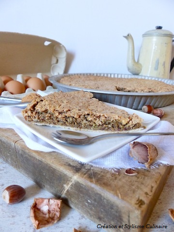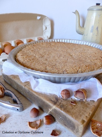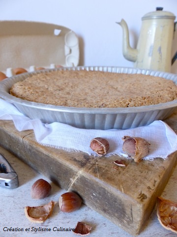 Garnir la tarte de la préparation noix-noisette.
