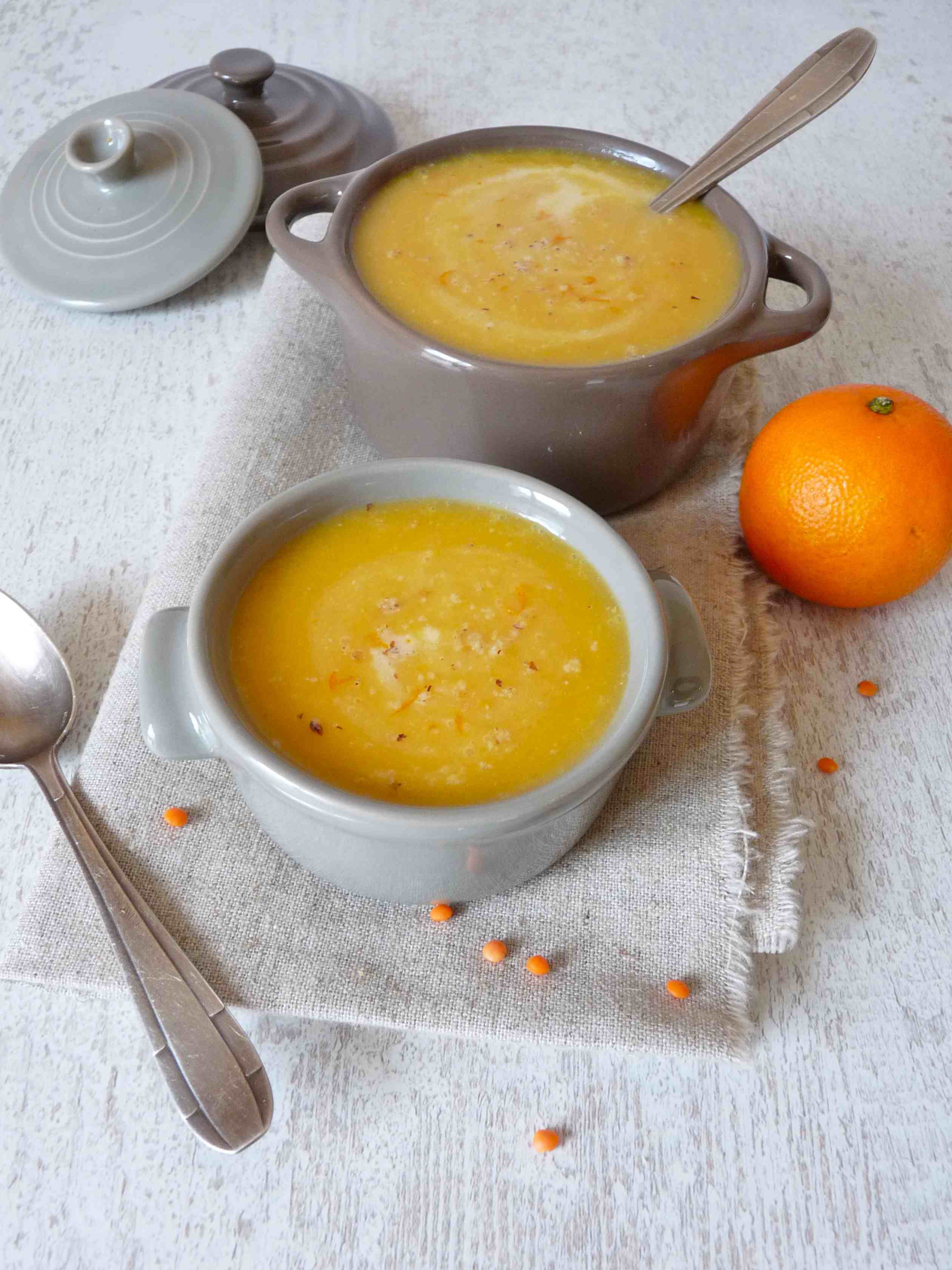 Manger sans gluten, léger et vitaminé avec le velouté de courge à la clémentine et aux lentilles corail